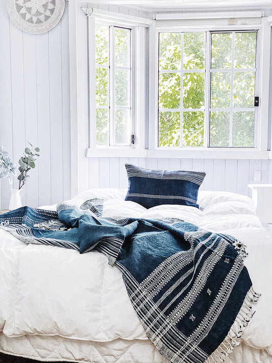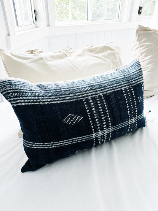 Midnight Blue Handwoven Lumbar Cushion Cover