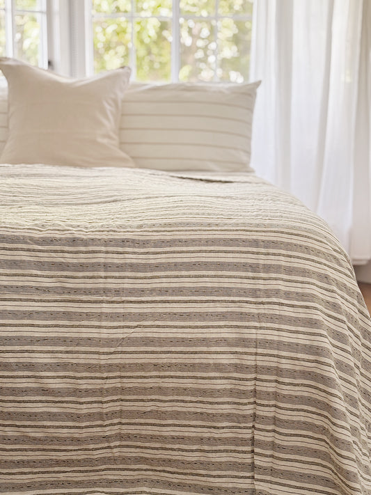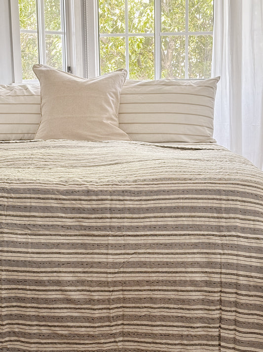 Ecru Modern Coastal Kantha Quilt