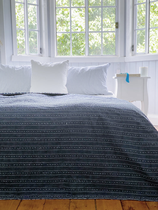 Indigo Patchwork Hand Block Printed Kantha Quilt