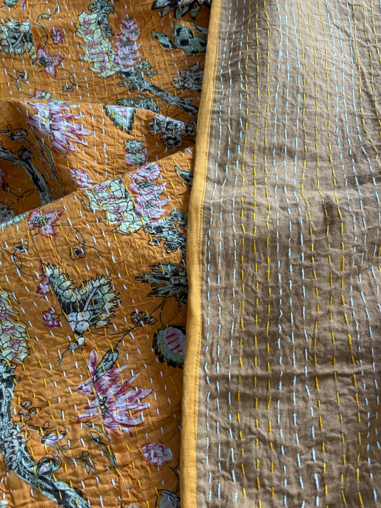 Coastal Chinoiserie Birds Kantha Quilt Bundle