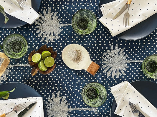 Indigo Polka Dot Palms Tablecloth (180x275cm)