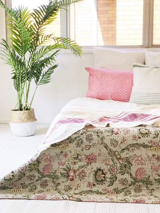 Polka Dot Palm Tree Summer Kantha Quilt Bundle ( single size)