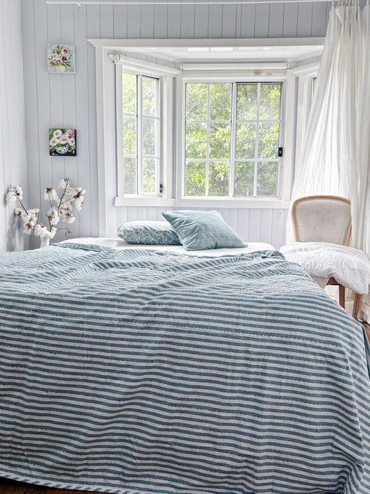 Hydrangea Blue Jardin Floral Kantha Quilt