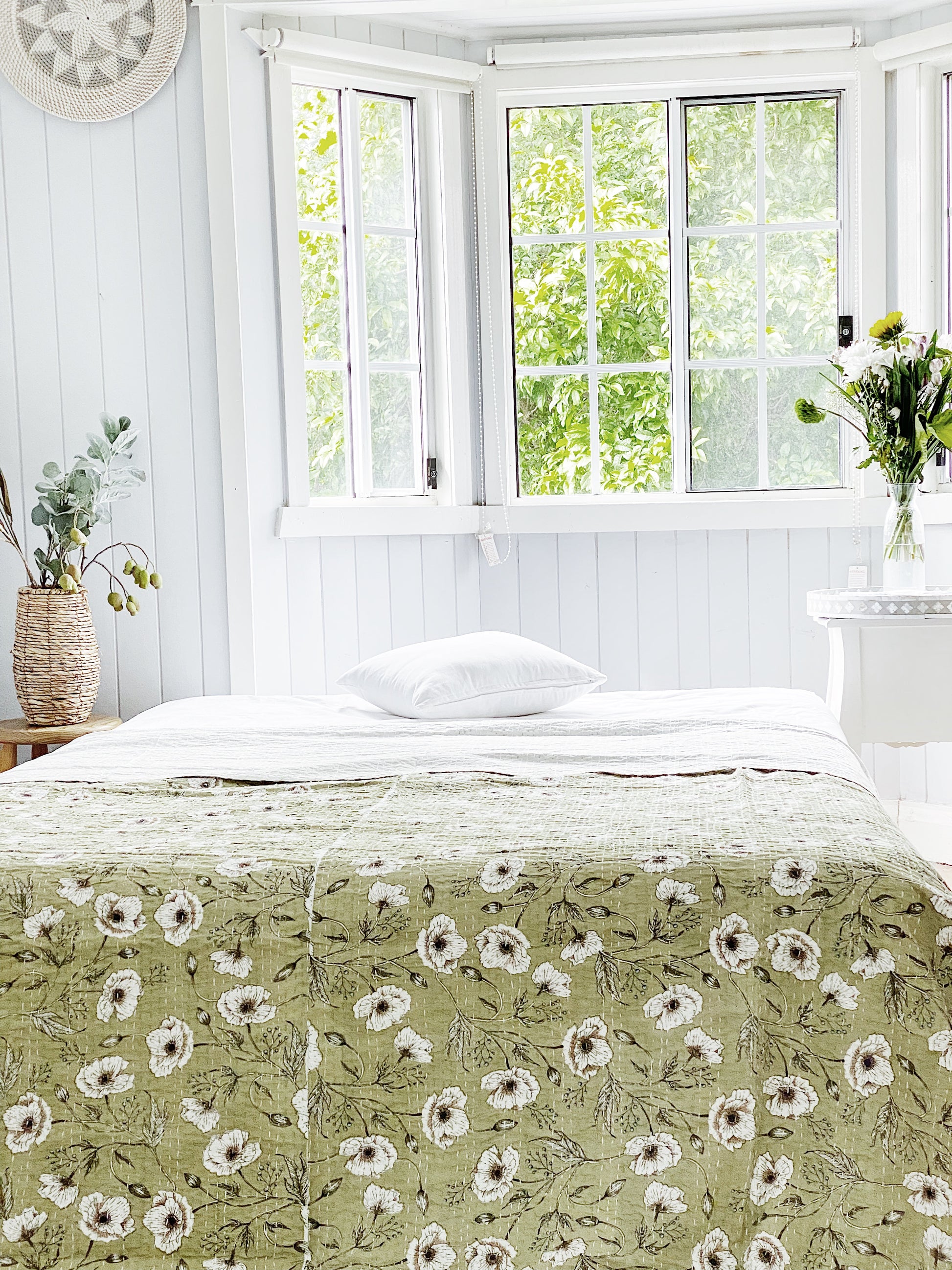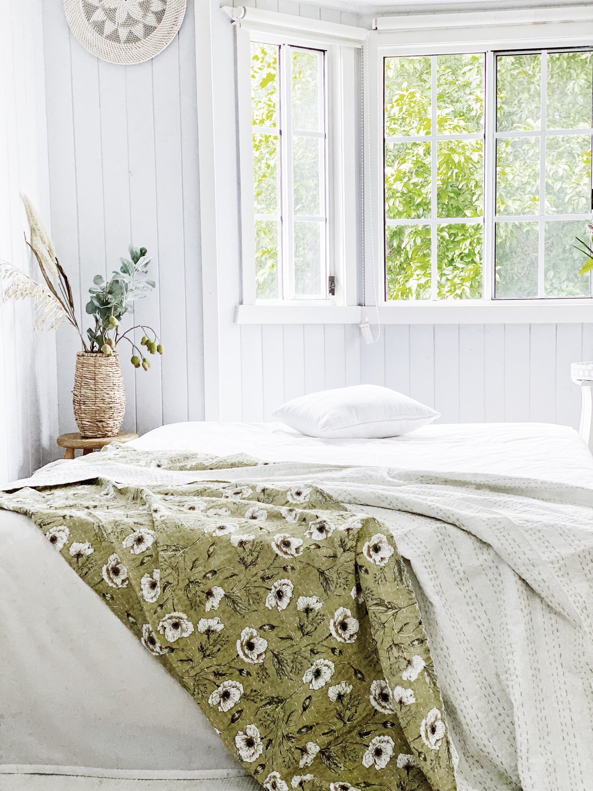 Designed keeping the Coastal living , this kantha quilt is screen printed by artisans in India.