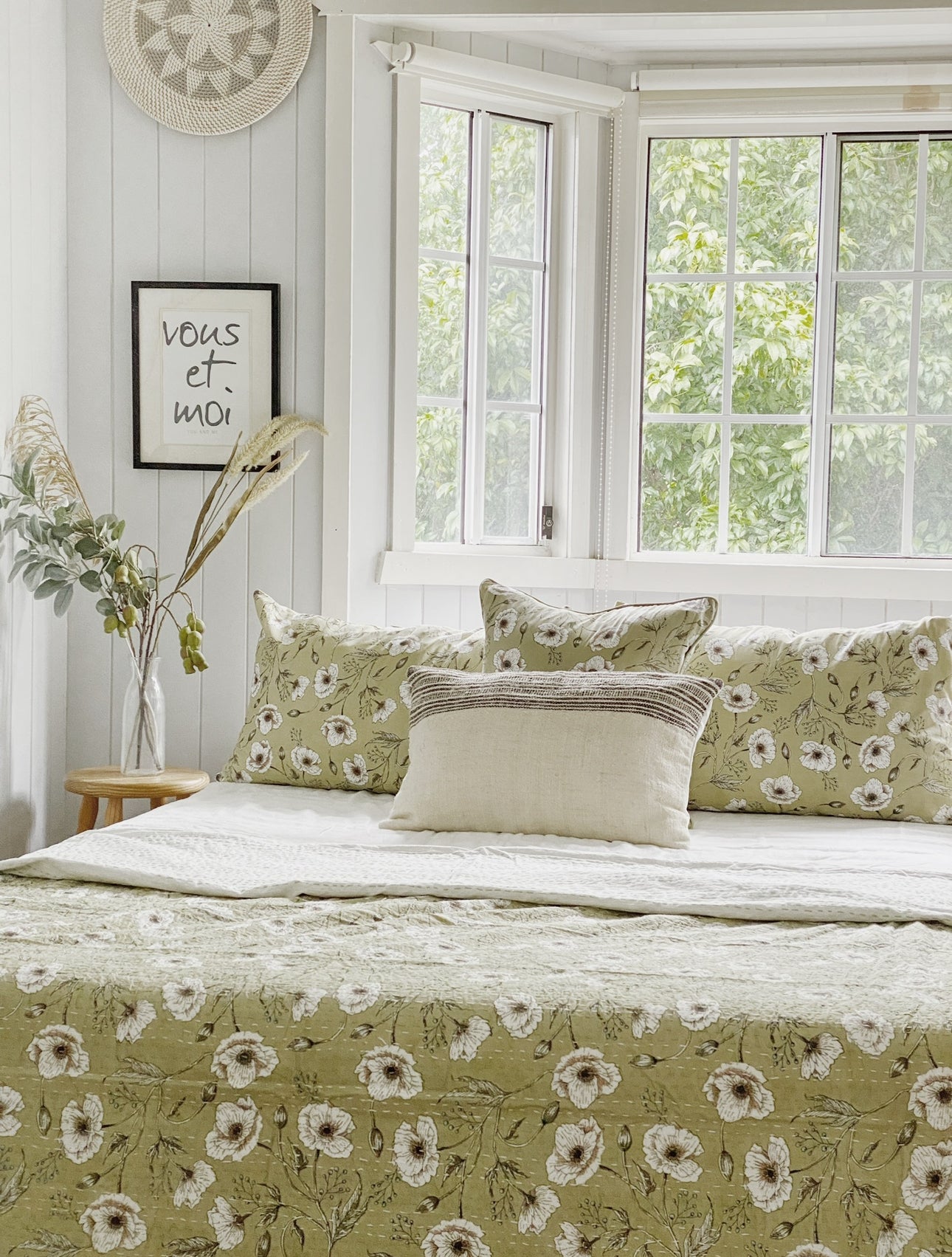 Hand screen printed and lined by muslin throughout with a concealed zip closure.