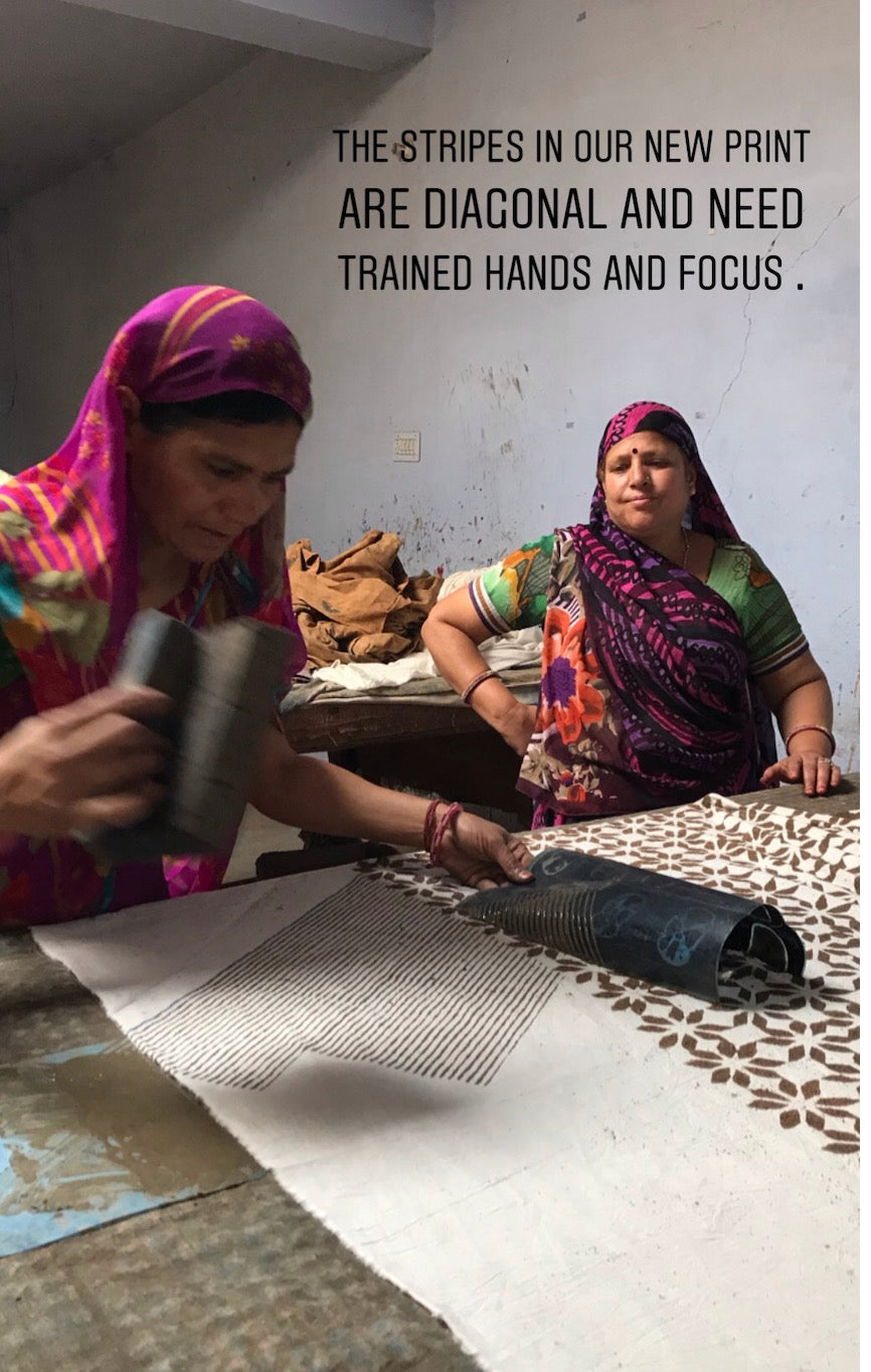 It is one of the oldest and most sustainable ways to print fabric.This process has very little carbon emissions as no machines are used in the process.