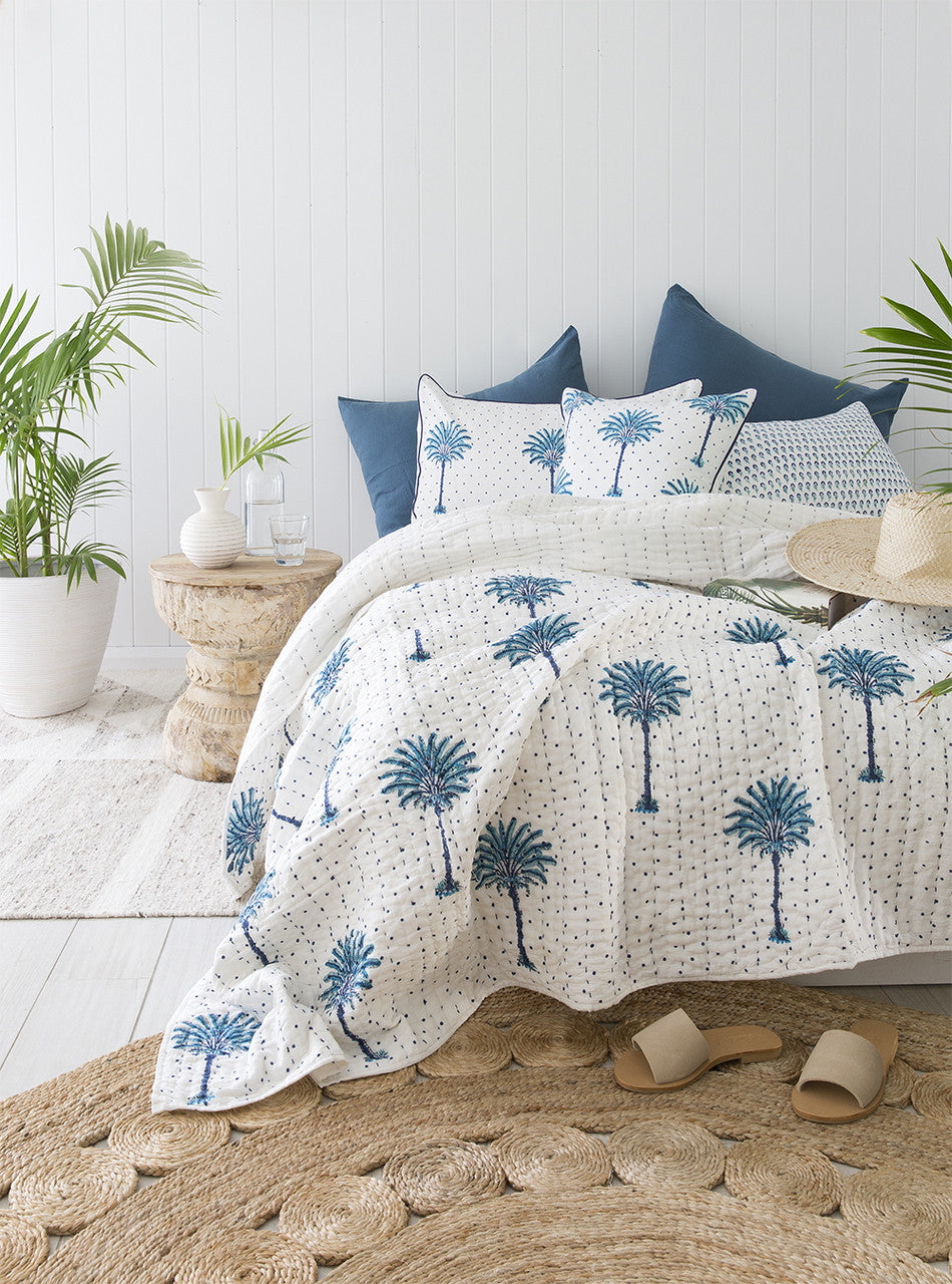 Blue Boho Palm Tree Polka Dot Euro Cushion Cover