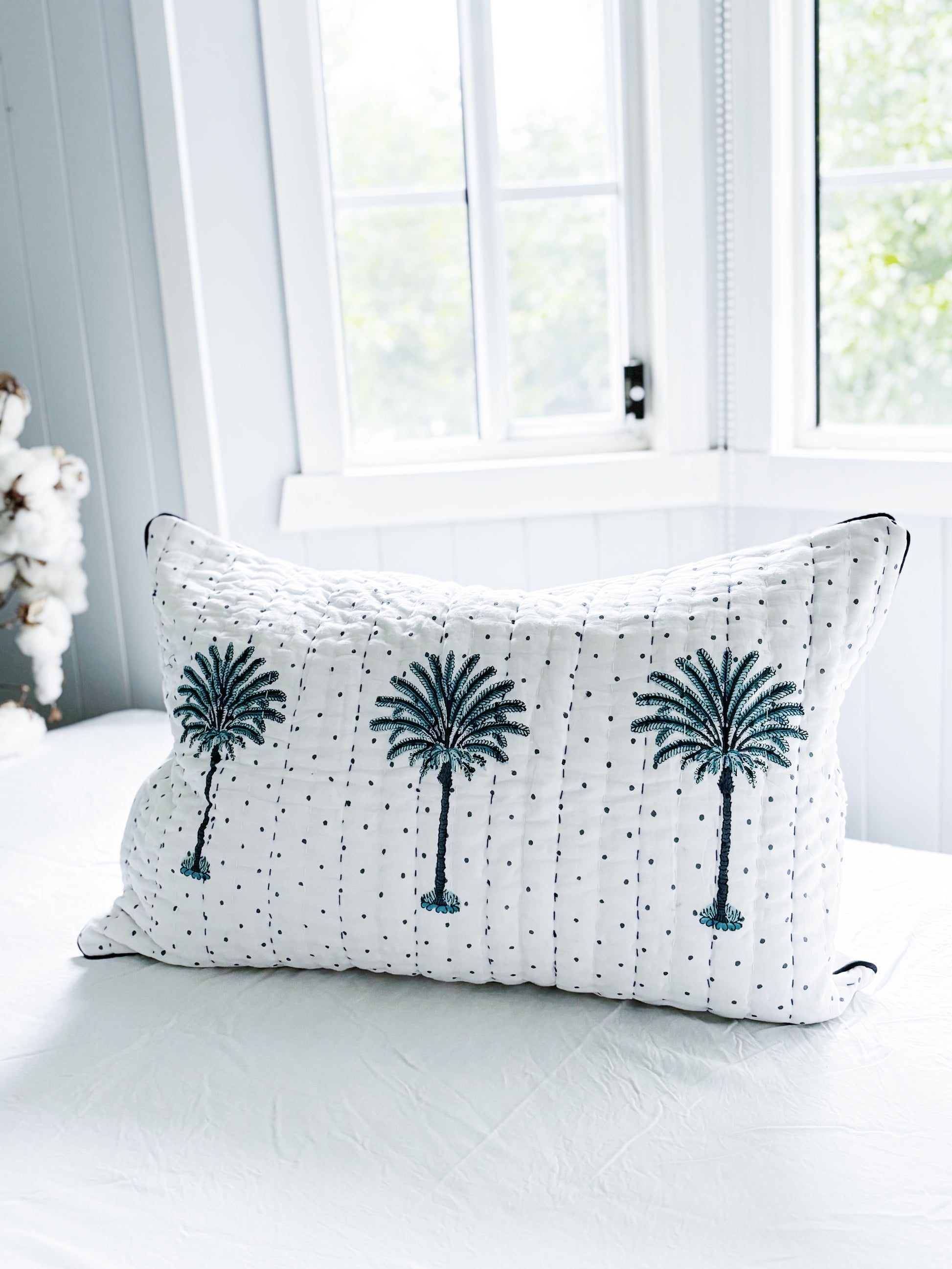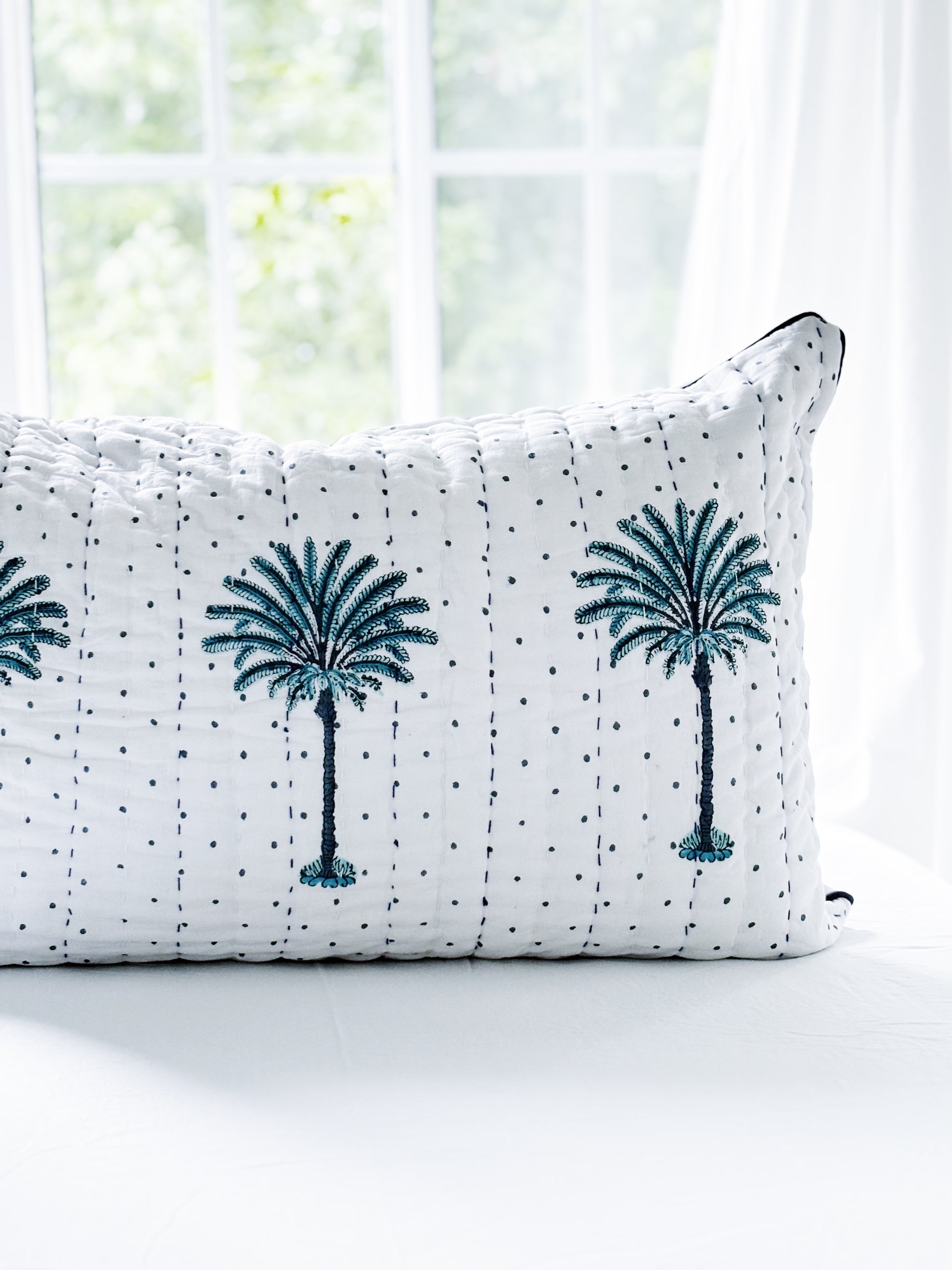 Blue Polka Dot Palm Tree Quilted Pillowcase