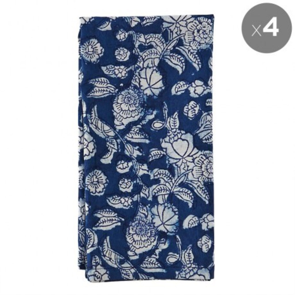 Using a 300-year-old mud resist printing technique, Indian artisans hand-stamp each all-cotton napkin with handcarved wood blocks. Each is then immersed multiple times in a vat of indigo dye and washed to reveal an intricate pattern.