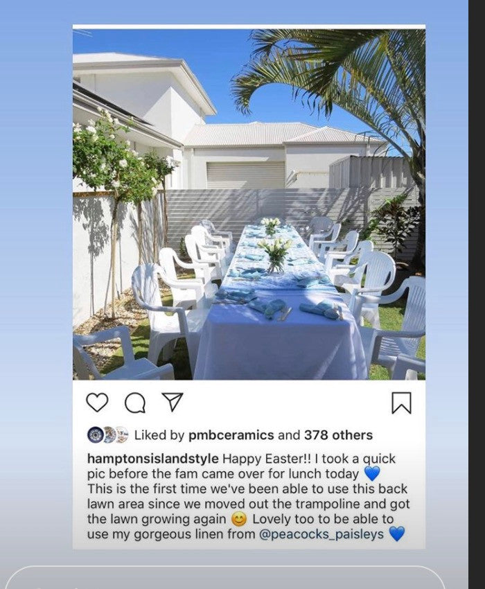 We love the quality and craftmanship that goes into the pieces created by the artisans for Peacocks and Paisley. The work in each piece is extraordinary and feels like a lot of care goes into what the team create. This is our second purchase from the company. We first purchased many pieces from the indigo range for our wedding in 2016, we have used the same tableclothes as displays at our family business selling produce at farmers markets. Now we just want to keep refreshing our collection because we love it. Very special - thank you x