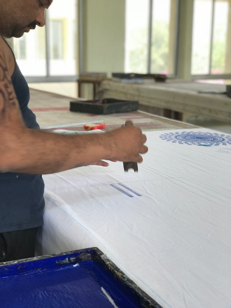 It is one of the oldest and most sustainable ways to print fabric.This process has very little carbon emissions as no machines are used in the process.