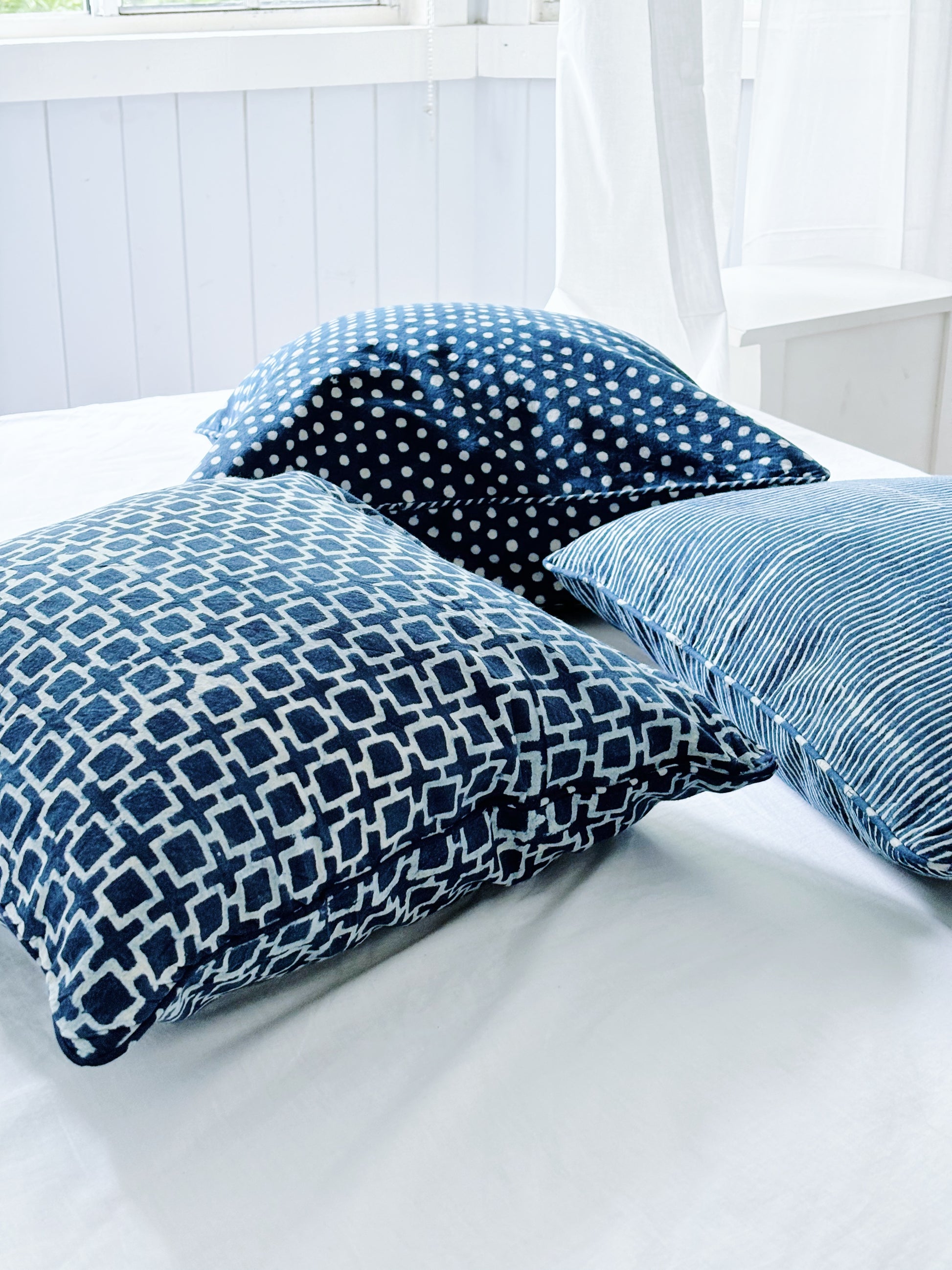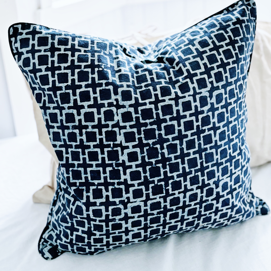 Beautiful quality cotton fabric, hand printed by skilled Indian artisans .This cushion cover is a must have for all indigo lovers .It has a concealed zip closure.Also, lined on all sides by piping in coordinating linen fabric .