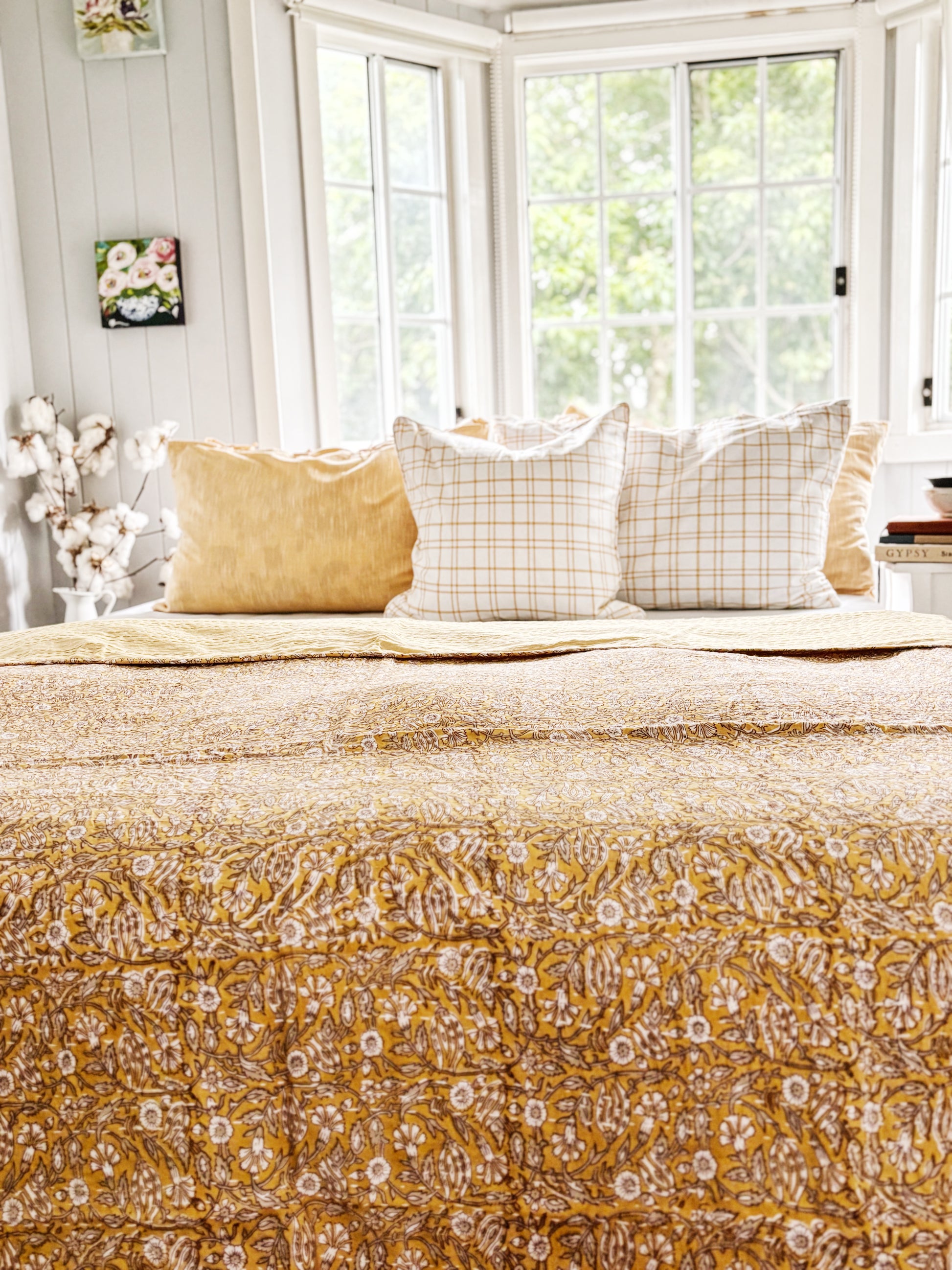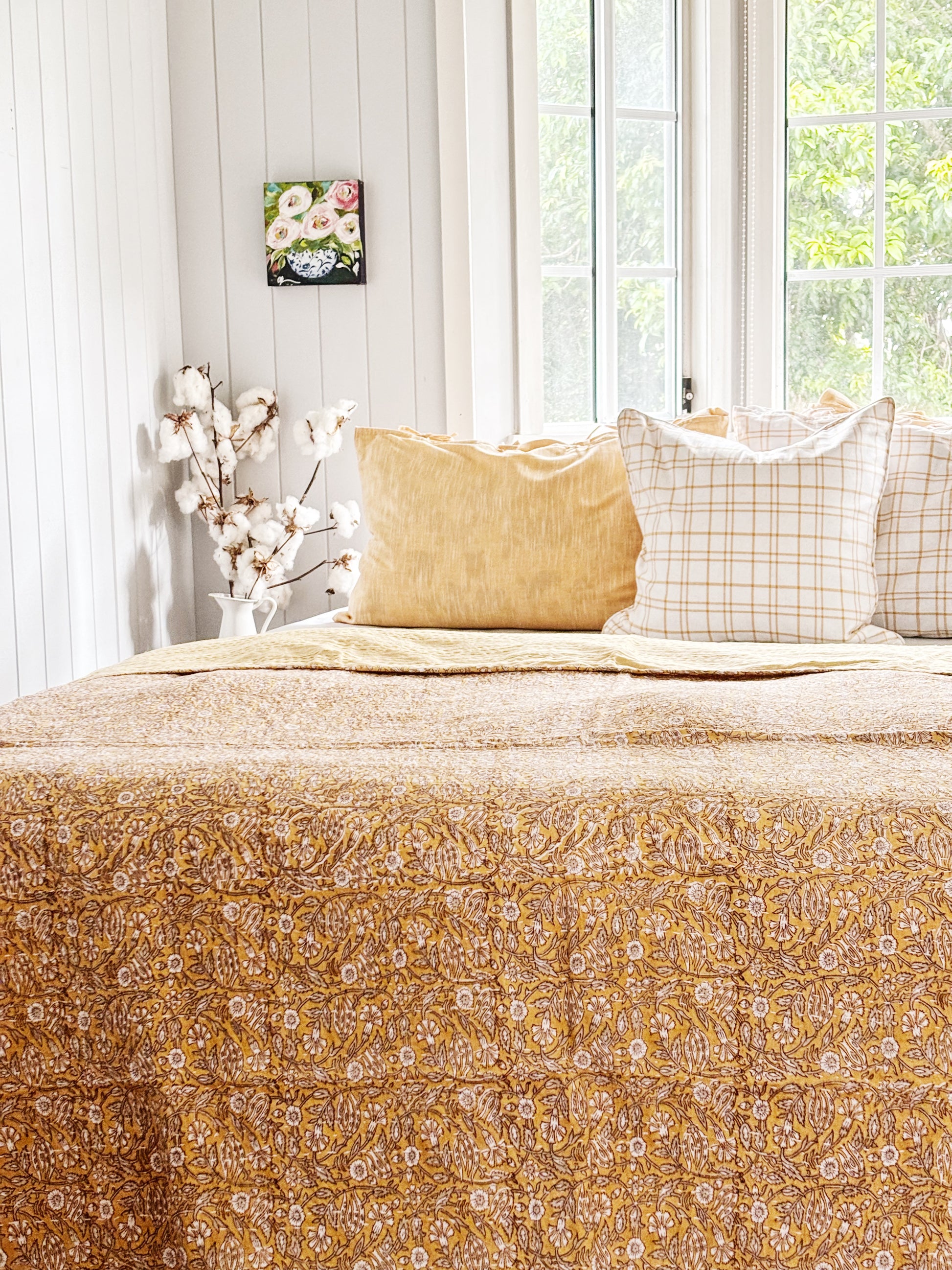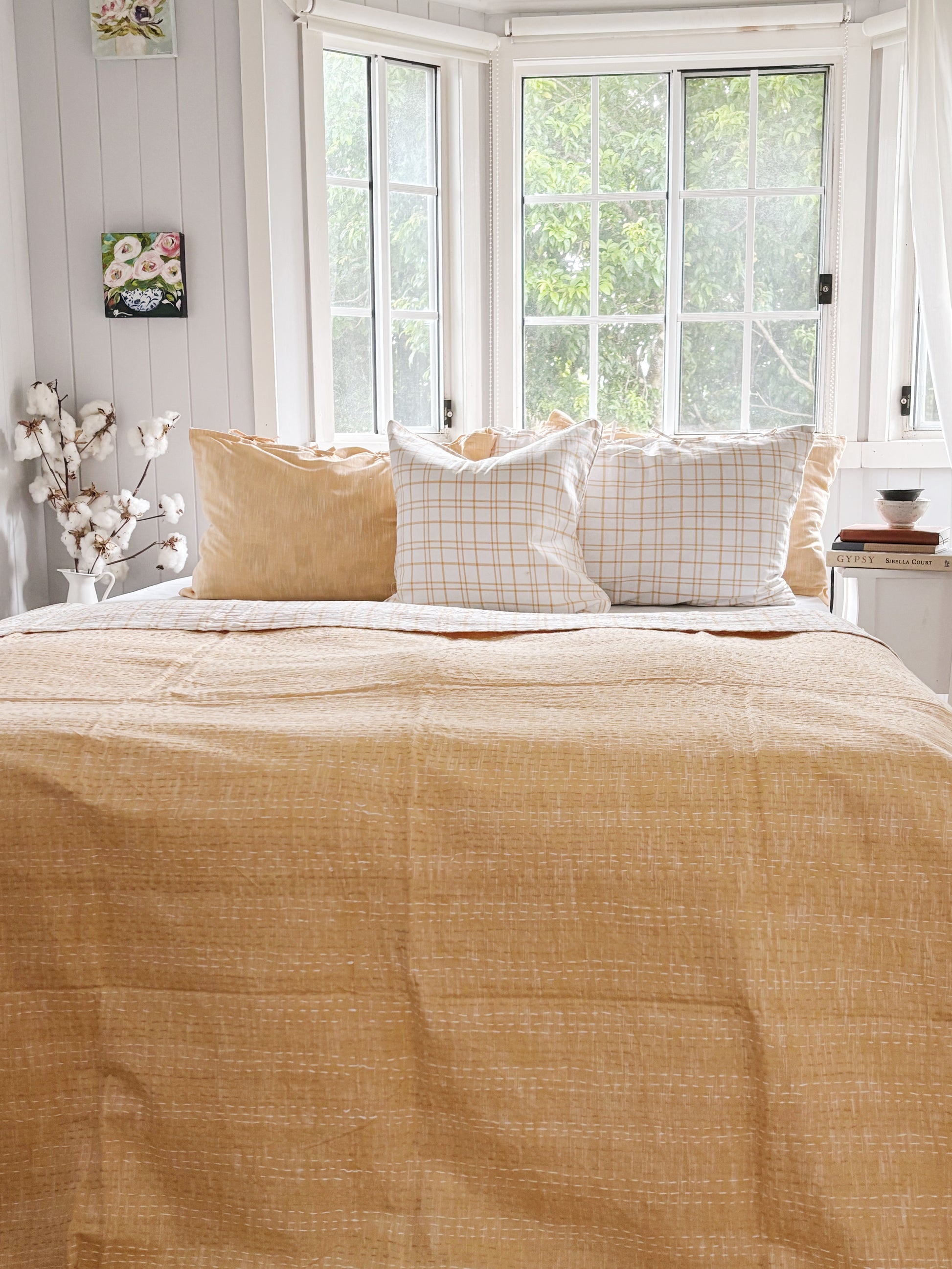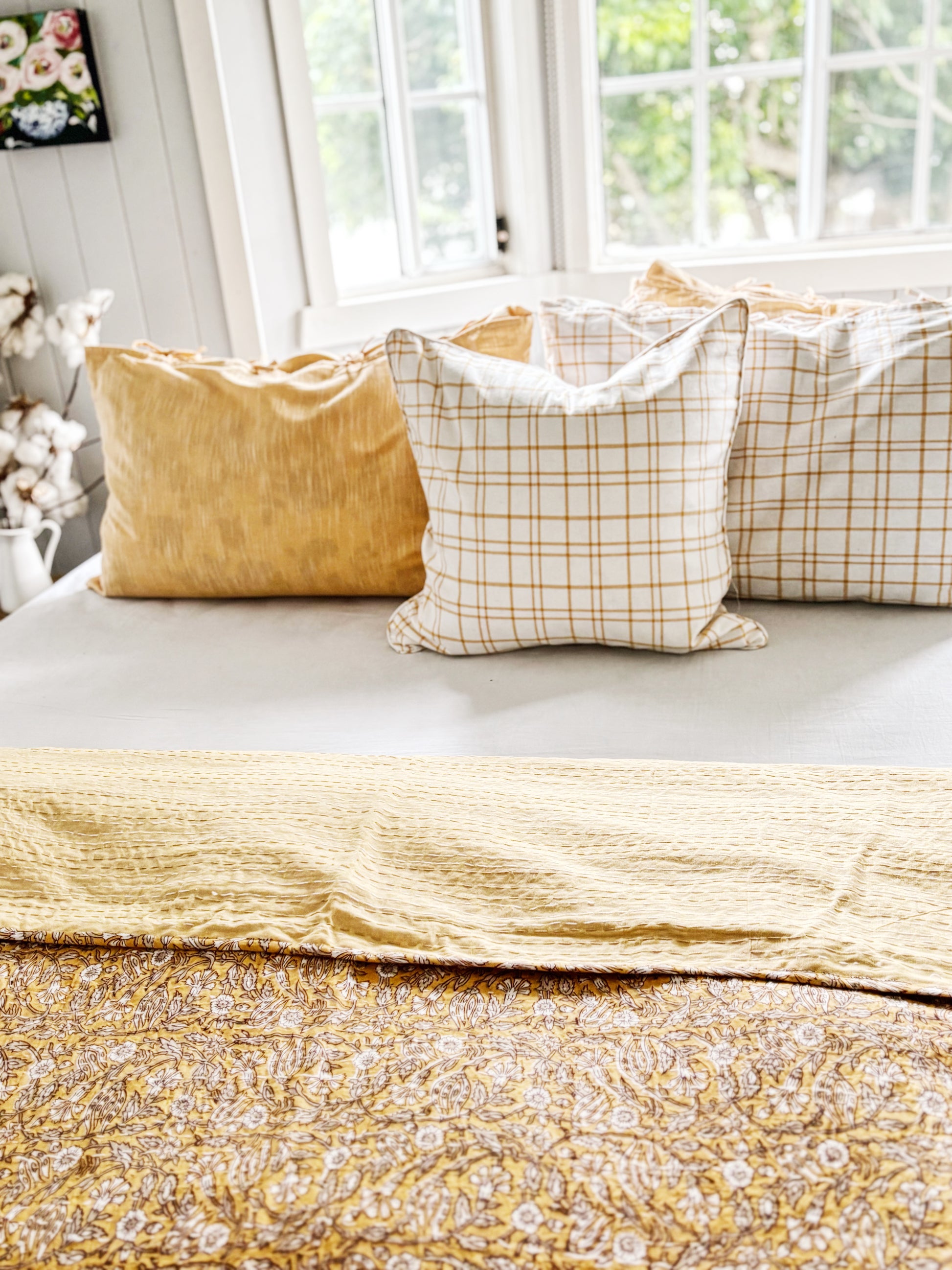 I bought the covers to complement the kantha quilt in the same pattern, to add some warmth to a neutral but room.
