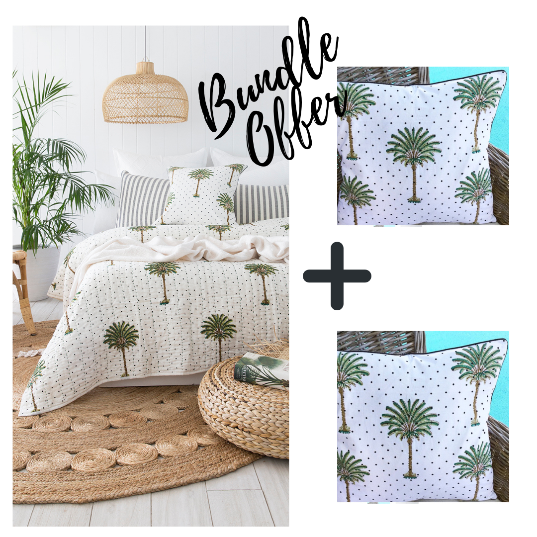 Polka Dot Palm Tree Kantha Quilt Bundle
