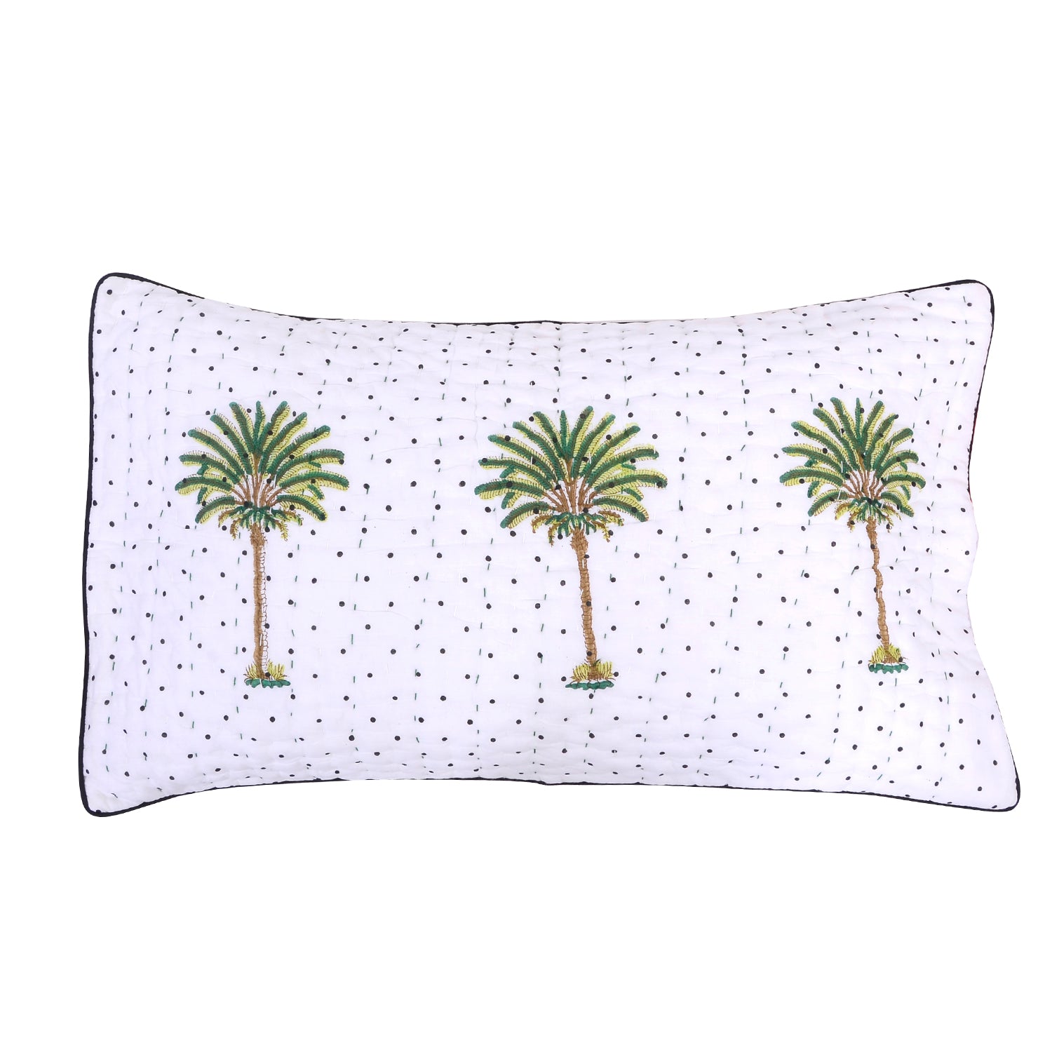-2 X Polka Dot Palm Tree Quilted Pillow Covers (48x75cm)