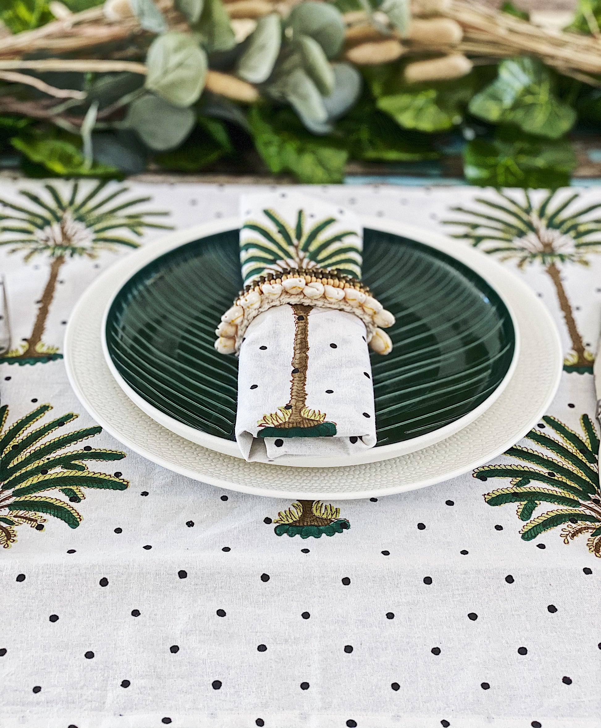 Bring the island vibe to the table with these palm napkins.Designed in Australia and hand block printed by Indian artisans using the hand block print technique .Ethically and sustainably made.