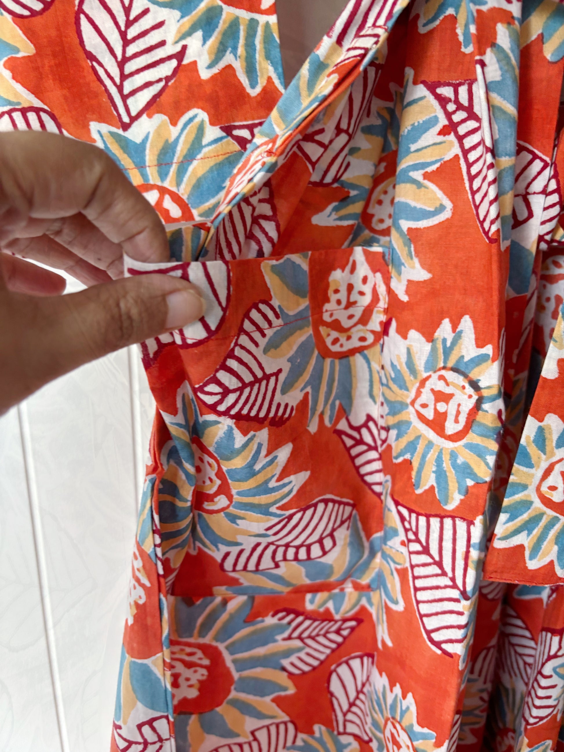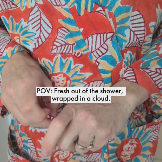 Our Floral 100% Cotton Dressing Gown is hand-printed using age-old block-printing traditions, turning every petal and brushstroke into a work of art. Lightweight, breathable, and made for real life, it’s a robe that celebrates softness — in fabric, in form, and in the moments you create while wearing it.
