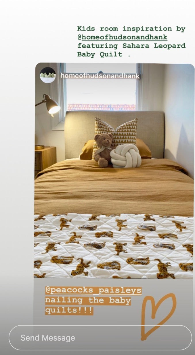 Pair this quilt with one of our sustainable rugs and a Sahara Leopard cushion cover - perfect for a budding animal lover little bohemian. Sprinkle generously with favourite leafy green plants .